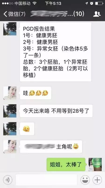 总数:3个胚胎,1个异常胚胎,2个健康胚胎(2男可以移植)